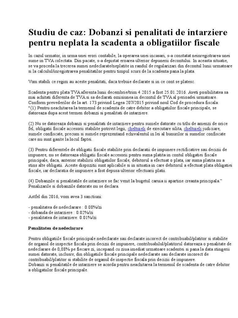 Dobanzi De Intarziere Si Penalitati Cum Se Calculeaza Si Cum Se Aplica Pentru Tva Restant