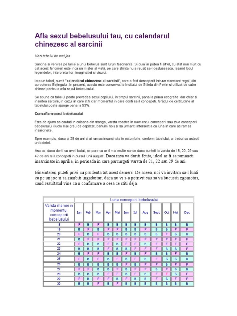 Calendar Chinezesc Sarcina Afla Sexul Copilului Fata Sau Baiat