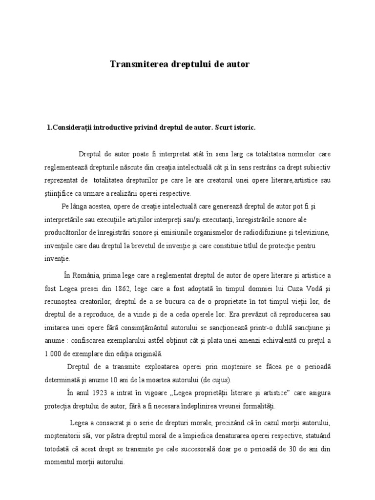 Referat Transmiterea Contractuala A Dreptului De Autor Drept 313016