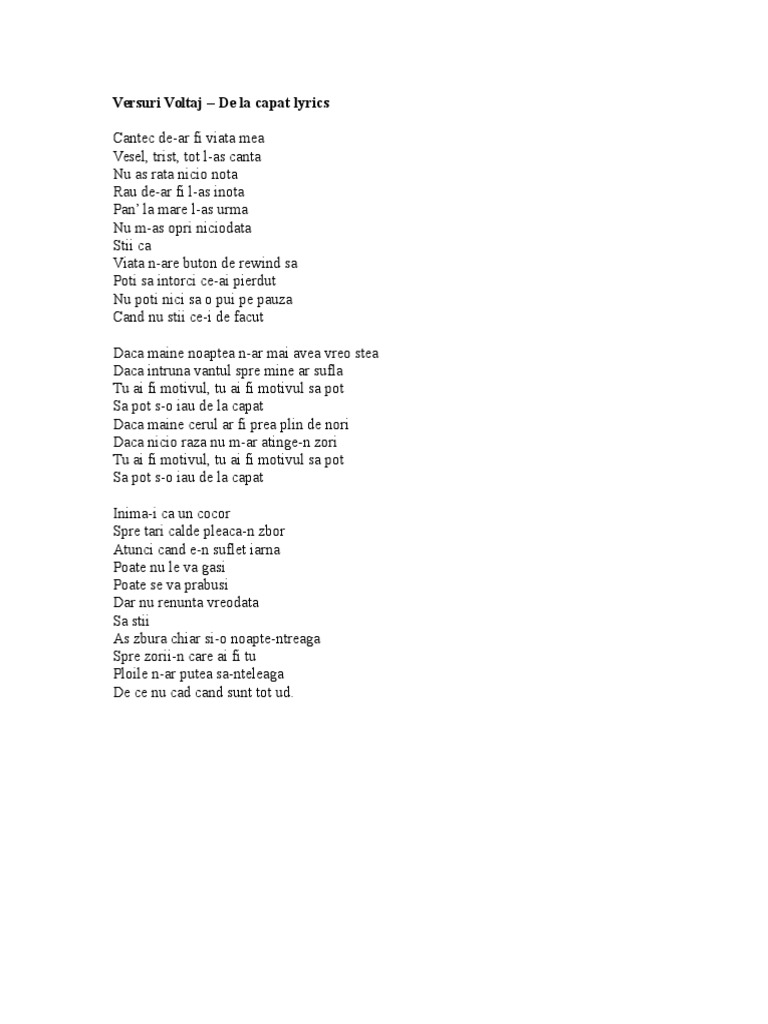 De La Capat Lyrics Voltaj Romania