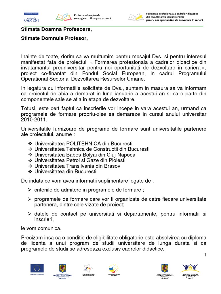 Stimata Doamna Profesoara Stimate Domnule Profesor