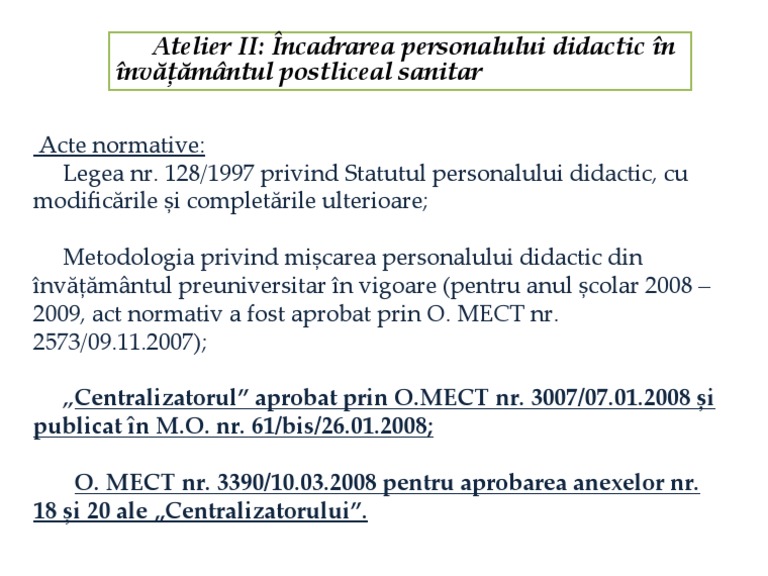Atelier Ii Incadrarea Personalului Didactic In Invăţămantul Postliceal Sanitar