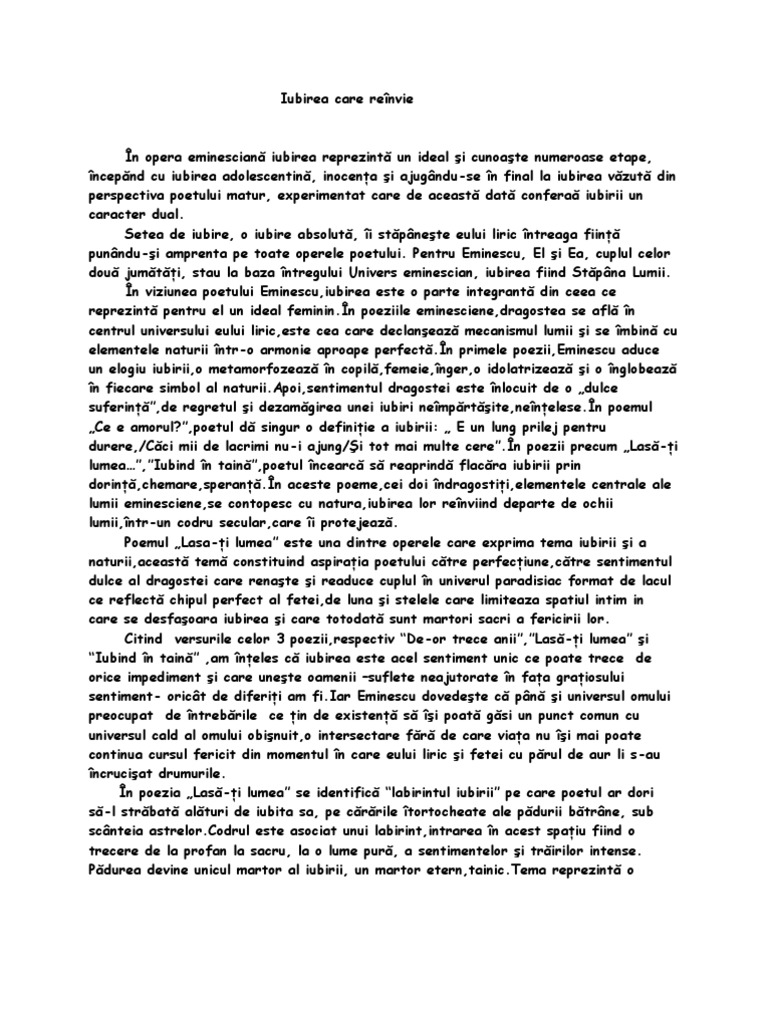 Referat Tema Iubirii Si A Naturii La Eminescu Romana 250141