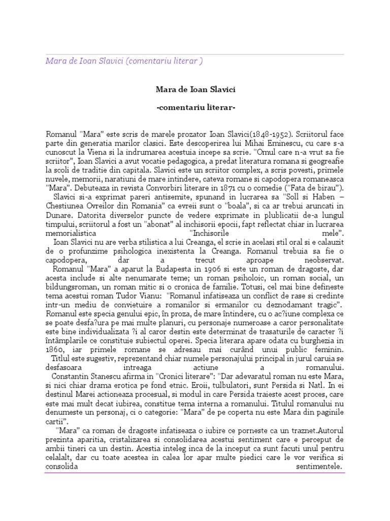 Referat Mara De Ioan Slavici Revista De Recenzii