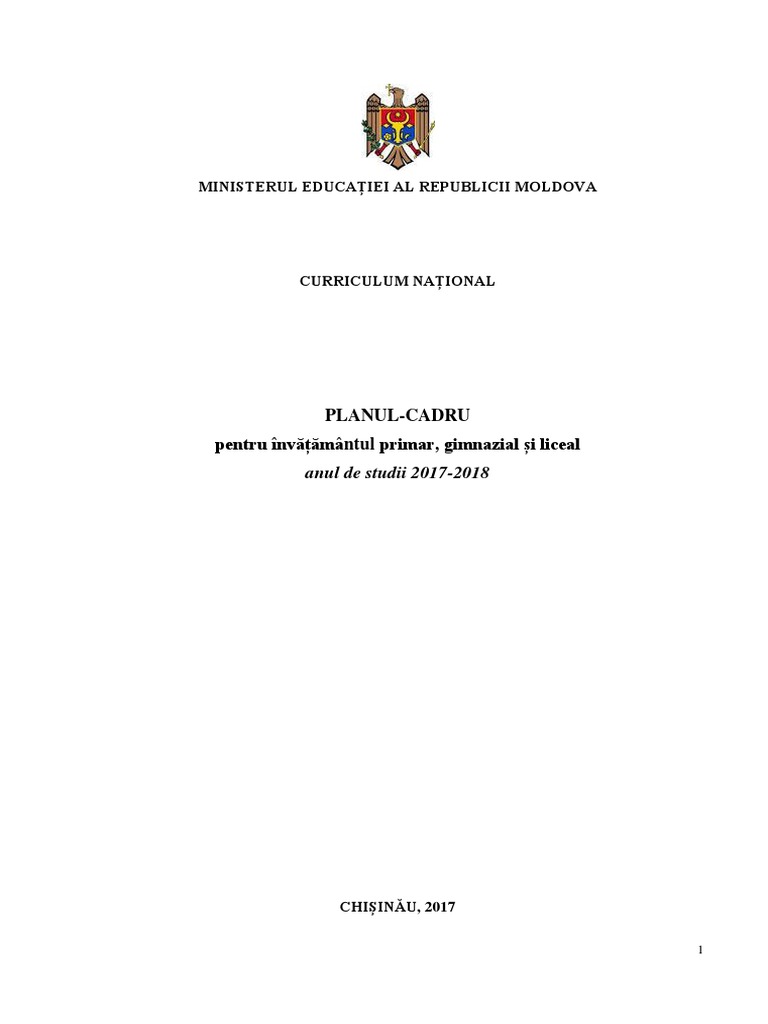 Curriculum Național Planul Cadru Pentru Invățămantul Primar Gimnazial și Liceal Anul De Studii 2017 2018 Bodrug Eu