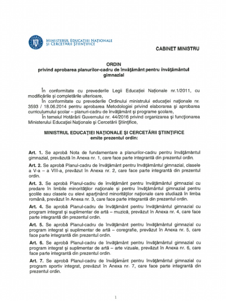 Document Cum Arata Noul Plan Cadru Pentru Gimnaziu Dupa Care Vor Invata Elevii Incepand Cu Anul Scolar 2017 2018 Hotnews Mobile