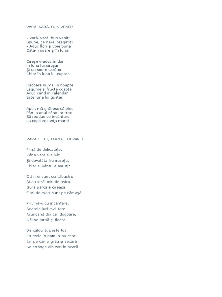 Poezie Vara Draga Kids Education Summer Preschool Nursery Rhymes