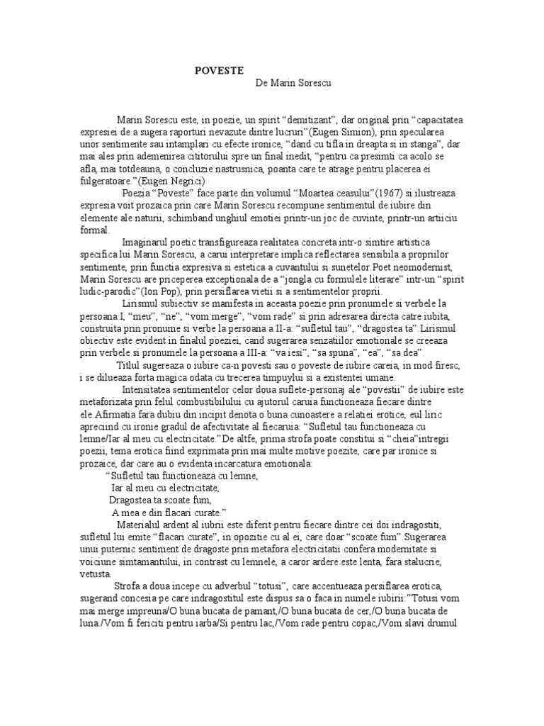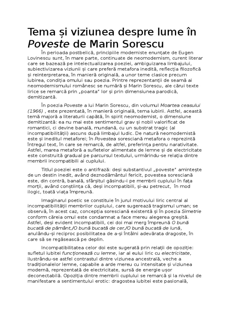 Tema și Viziunea Despre Lume In Poveste De Marin Sorescu