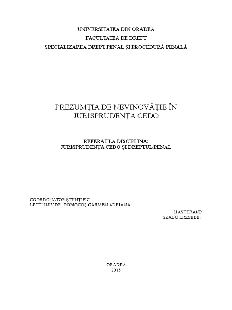 Prezumtia De Nevinivatie In Jurisprudenta Cedo