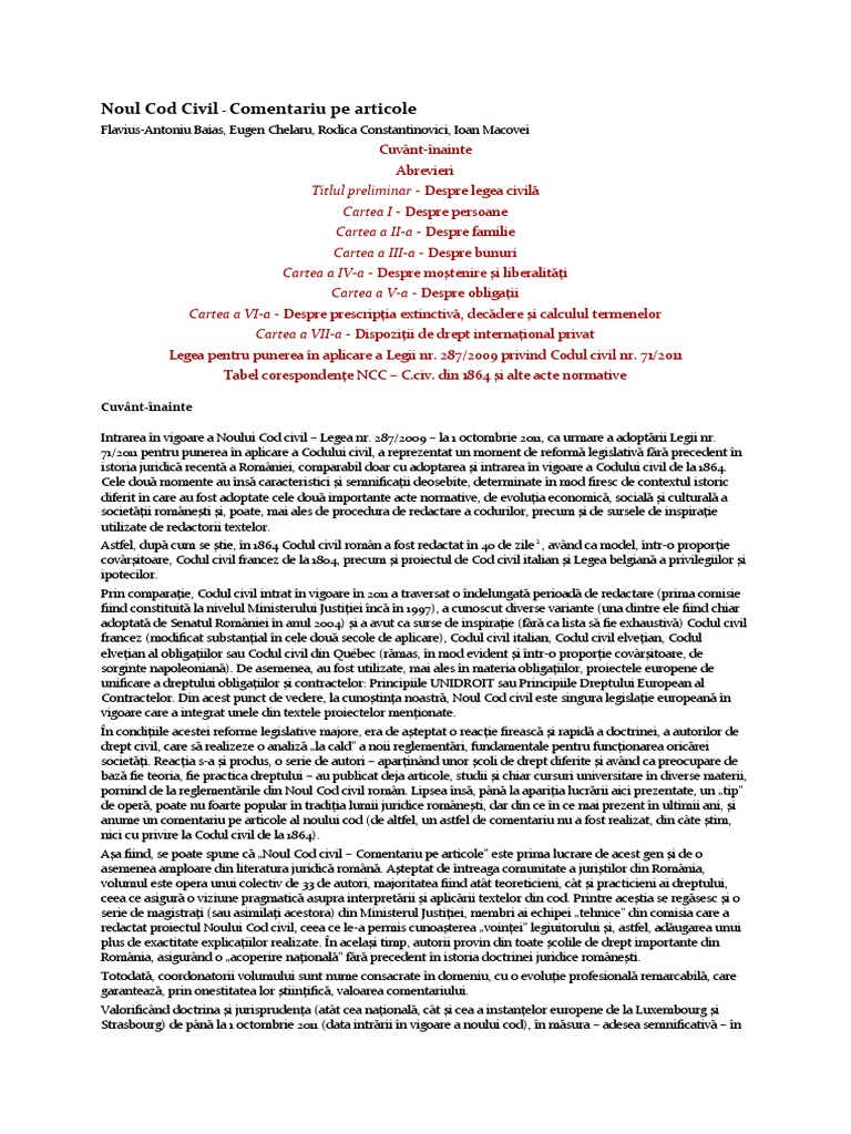Noul Cod Civil Comentariu Pe Articole Flavius Antoniu Baias Eugen Chelaru Rodica Constantinovici Ioan Macovei