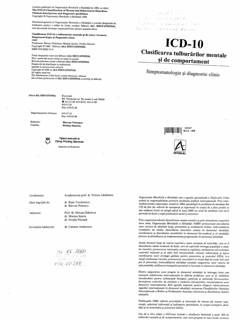 Icd 10 Clasificarea Tulborarilor Mentale Si De Comportament Oms Ed All Educational Pdf