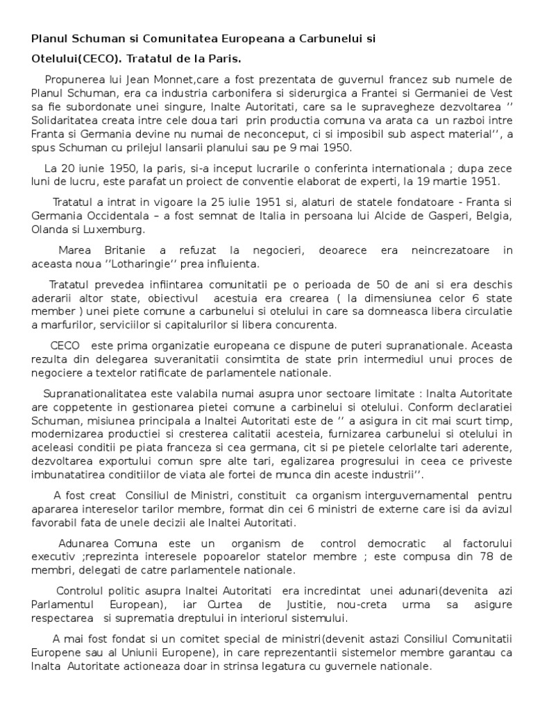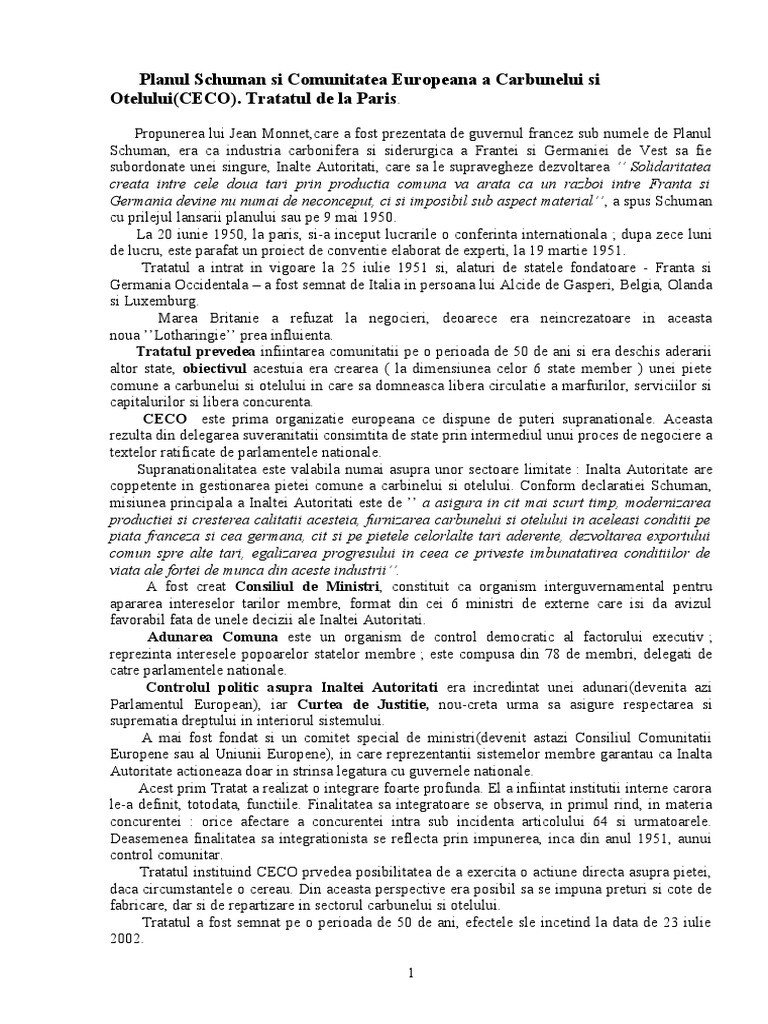 Proiect Tratatul De La Paris Din 1951 Drept 126509